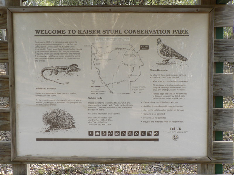 Nach Norden Richtung Richtung Gawler und dann östlich ab ins Barossa Valley. Es wird deutlich wärmer. Mein Ding. Sonne, Wärme, Beifahrerfenster auf. Heute werden es nicht so viele Kilometer. Ich halte öfter an, fotografiere mehr. Im Reservat Kaiser Stuhl sieht es zum Teil wirklich aus wie bei uns am Kaiserstuhl in Südbaden. Die Gegend hat den Namen sicher nicht von ungefähr. Wenn es nicht so warm wäre und die Sonne so sommerlich stechen würde, man könnte meinen, es ist Herbst in Deutschland.