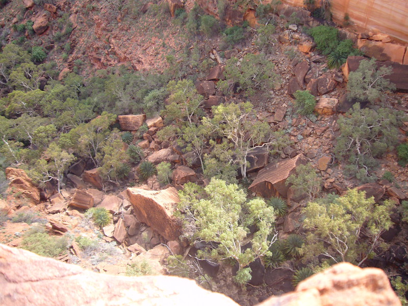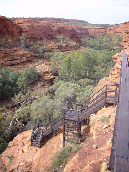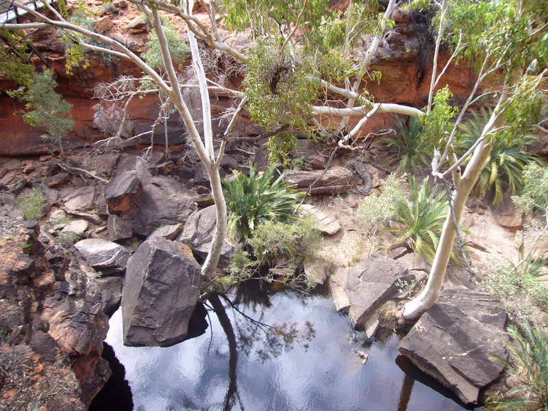 Fantastisch. Ungefähr nach der Hälfte der Tour geht es über Treppen steil nach unten zu einem Wasserloch. Hier ist es immer feucht und hier haben sich auch einige in Australien seltene subtropische Pflanzen angesiedelt, zum Beispiel Palmfarne. Nicht umsonst wird dieser Ort „Garten Eden“ genannt.