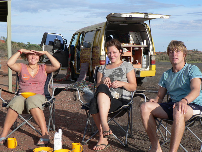 Am Morgen um halb sieben kommt der Maintainance-Truck. Er bringt Wasser zum Duschen, Holz und macht auf dem Rastplatz klar Schiff. Ein Trucker, der in der Nacht angehalten hatte, macht sich auf die Socken. Beim Kaffe lasse ich mir diese Betriebsamkeit gefallen. Marleen, Mona und Jonathan stehen erst gegen 8 Uhr auf. Für ein kleines gemeinsames Frühstück ist es noch nicht zu spät und dann heißt es see ya.