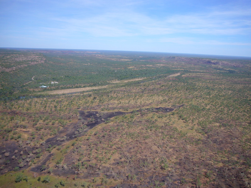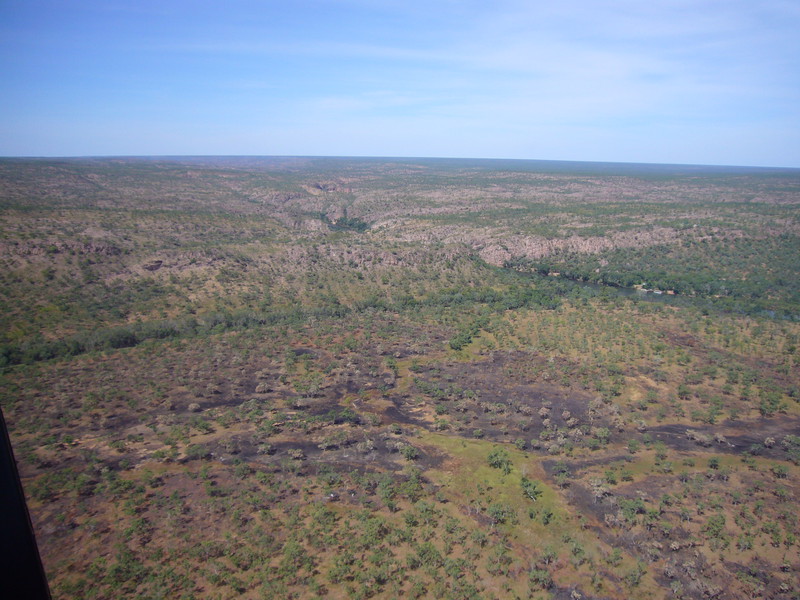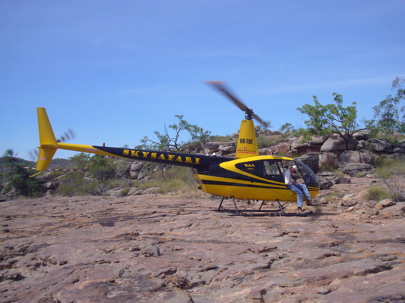 Clive hat mir gestern schon einen Schlüssel für die 4-Wheeldrive-areas angeboten. Viele Strecken sind noch geschlossen. Ich habe ihm gesagt, dass man mir im Besucherzentrum in Katherine gesagt hat, dass die Geländewagenstrecken alle gesperrt seien. „Das ist eben der Unterschied“, grinst er mich an. „Die einen haben einen Schlüssel, die anderen nicht“. Mal sehen, ob ich das Schlüsselangebot noch annehmen werde. Ganz sicher werde ich aber das Angebot nicht ausschlagen, nachher mit dem Helikopter über den Nationalpark zu fliegen. Clive erzählt mir im Gespräch, dass die touristischen Einrichtungen im Nationalpark inzwischen zu 100 Prozent in der Hand der Aborigines sind (Jawoyn-Aboriginals) und das auch gut so sei. Mit Don habe man einen ausgezeichneten Manager, die Einnahmen aus dem Tourismus fließen in die richtigen Kanäle. Die Regierung des Northern Territory, die Jawoyn und die Parkverwaltung arbeiten Hand in Hand. Und deshalb sei es auch falsch den 5-Sterne-Standard von vorneherein zu verteufeln. Und während wir auf der Terrasse sitzen und den wunderschönen Ausblick genießen können, ist mir gar nicht bewusst, dass das bereits ein Teil des 5-Sternekonzeptes ist.